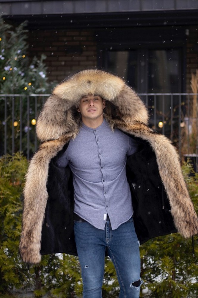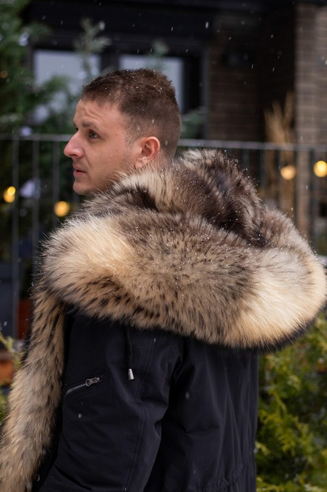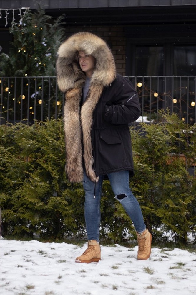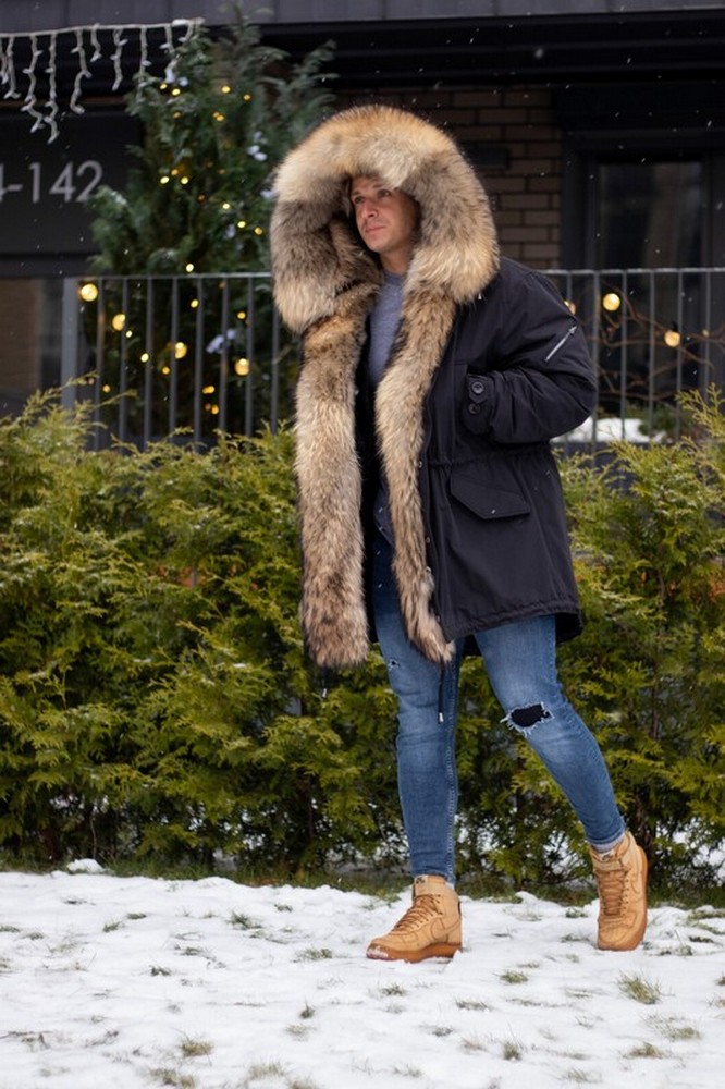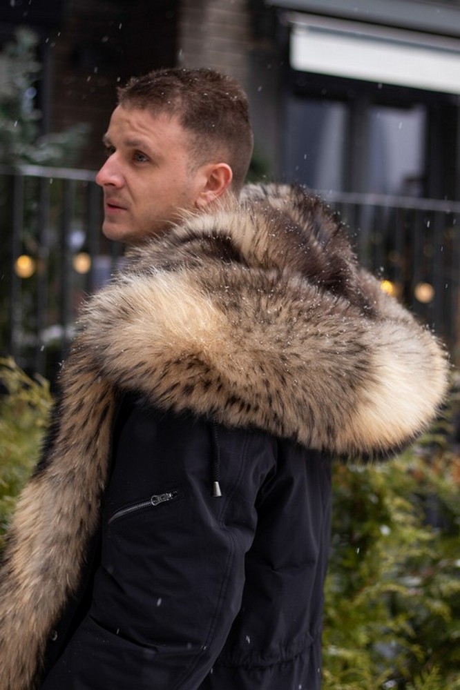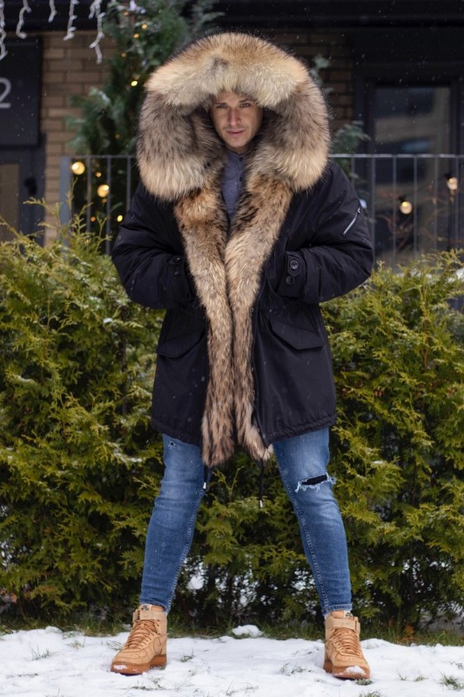 Men's parka with raccoon fur