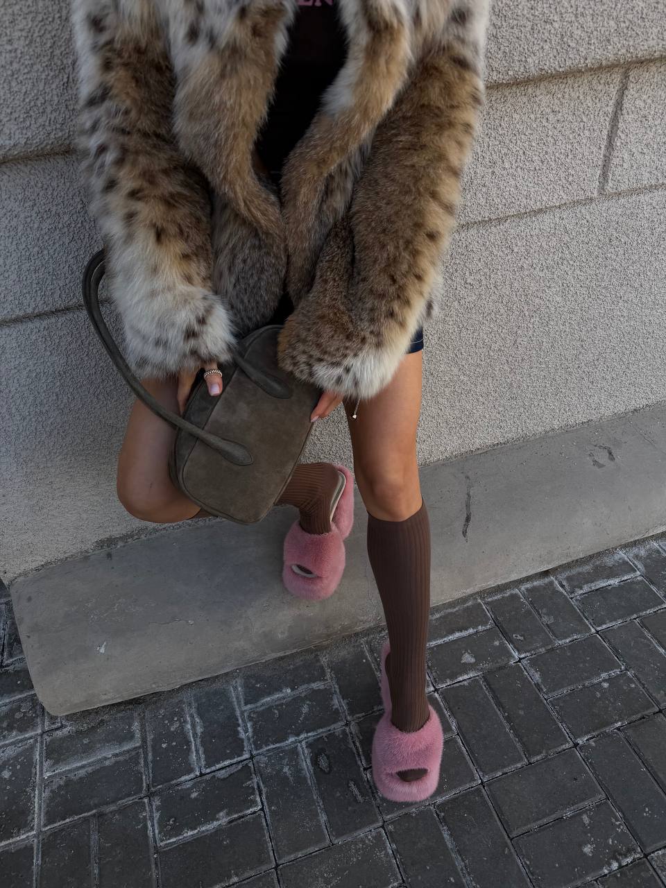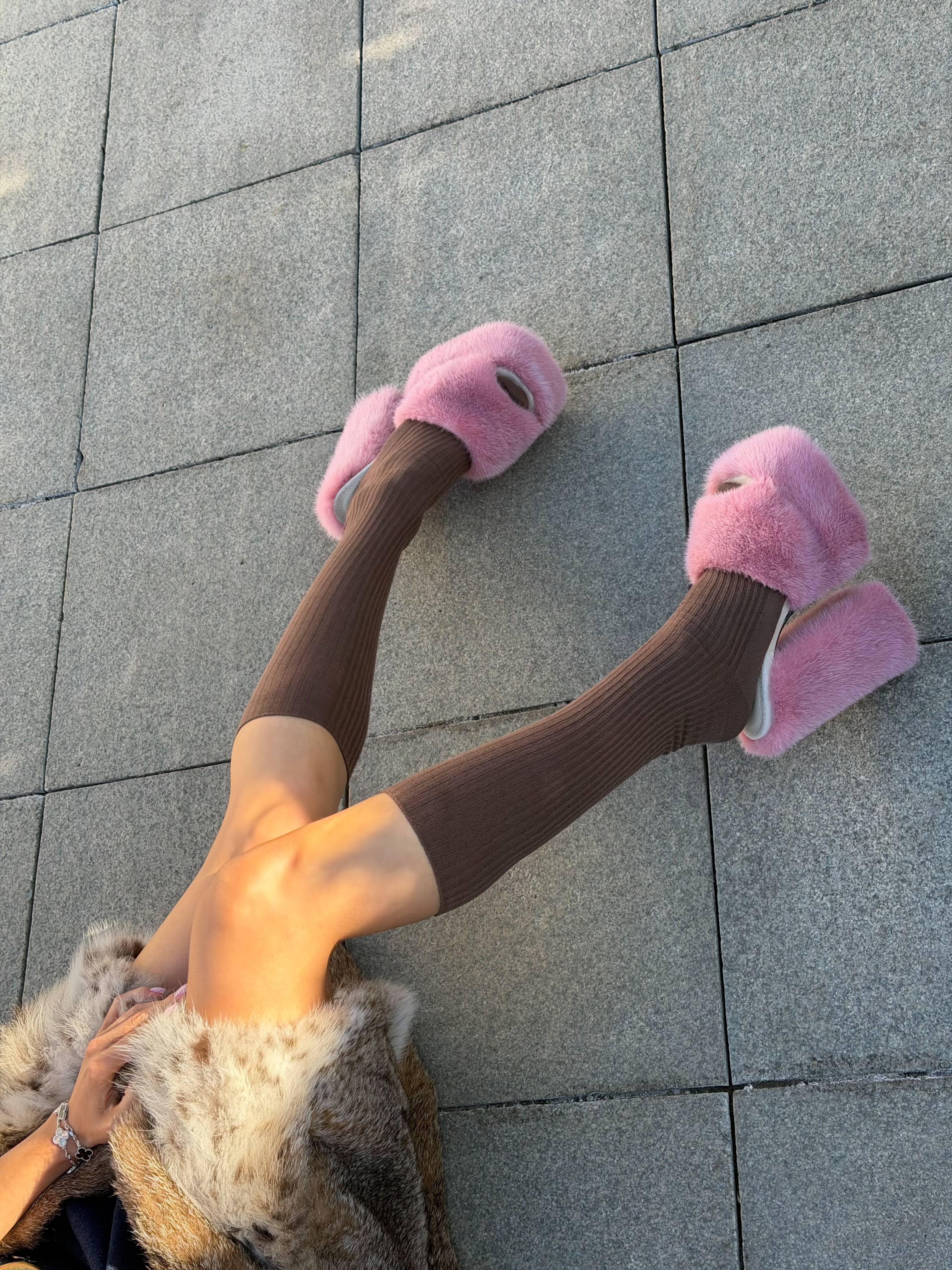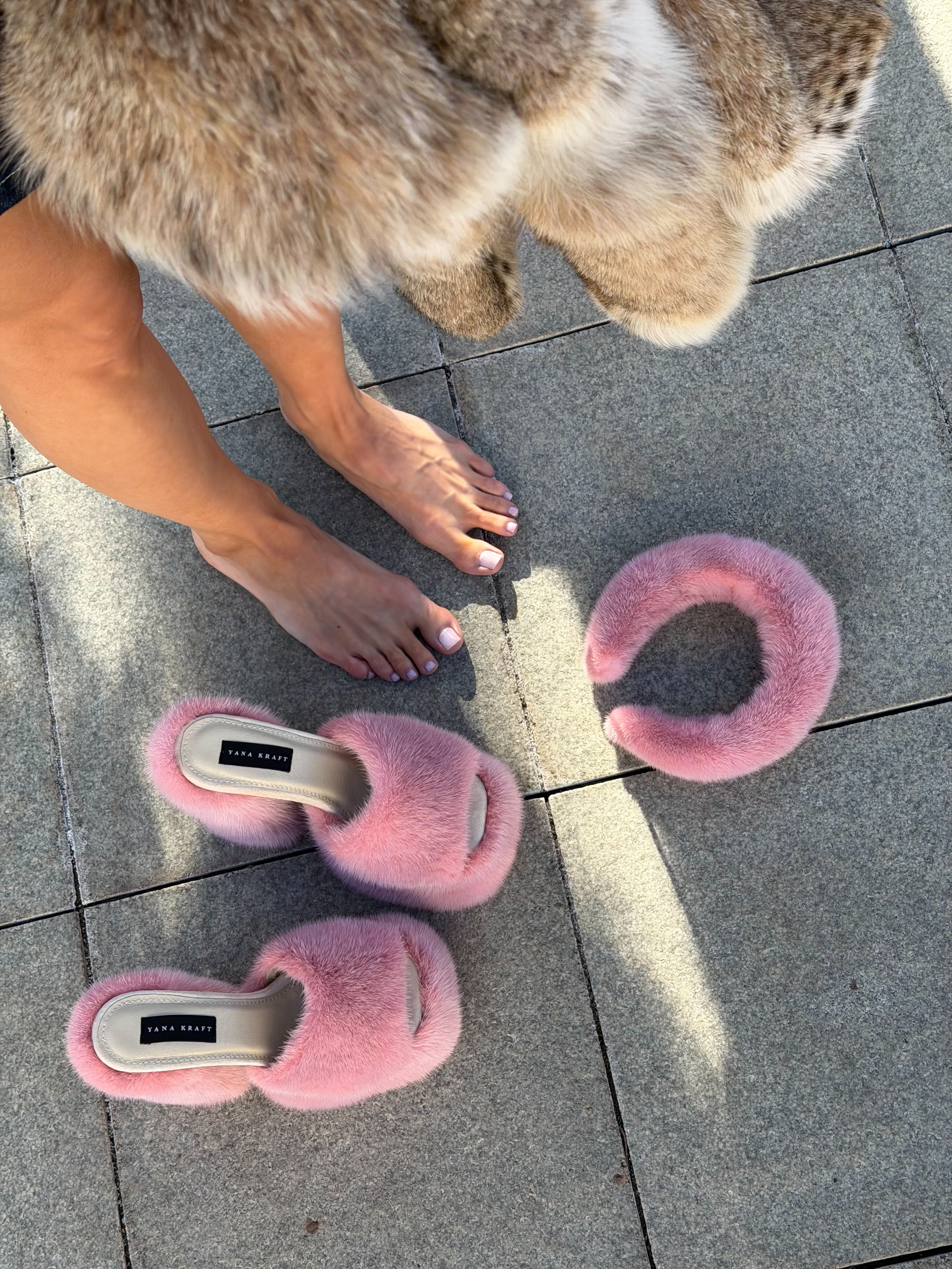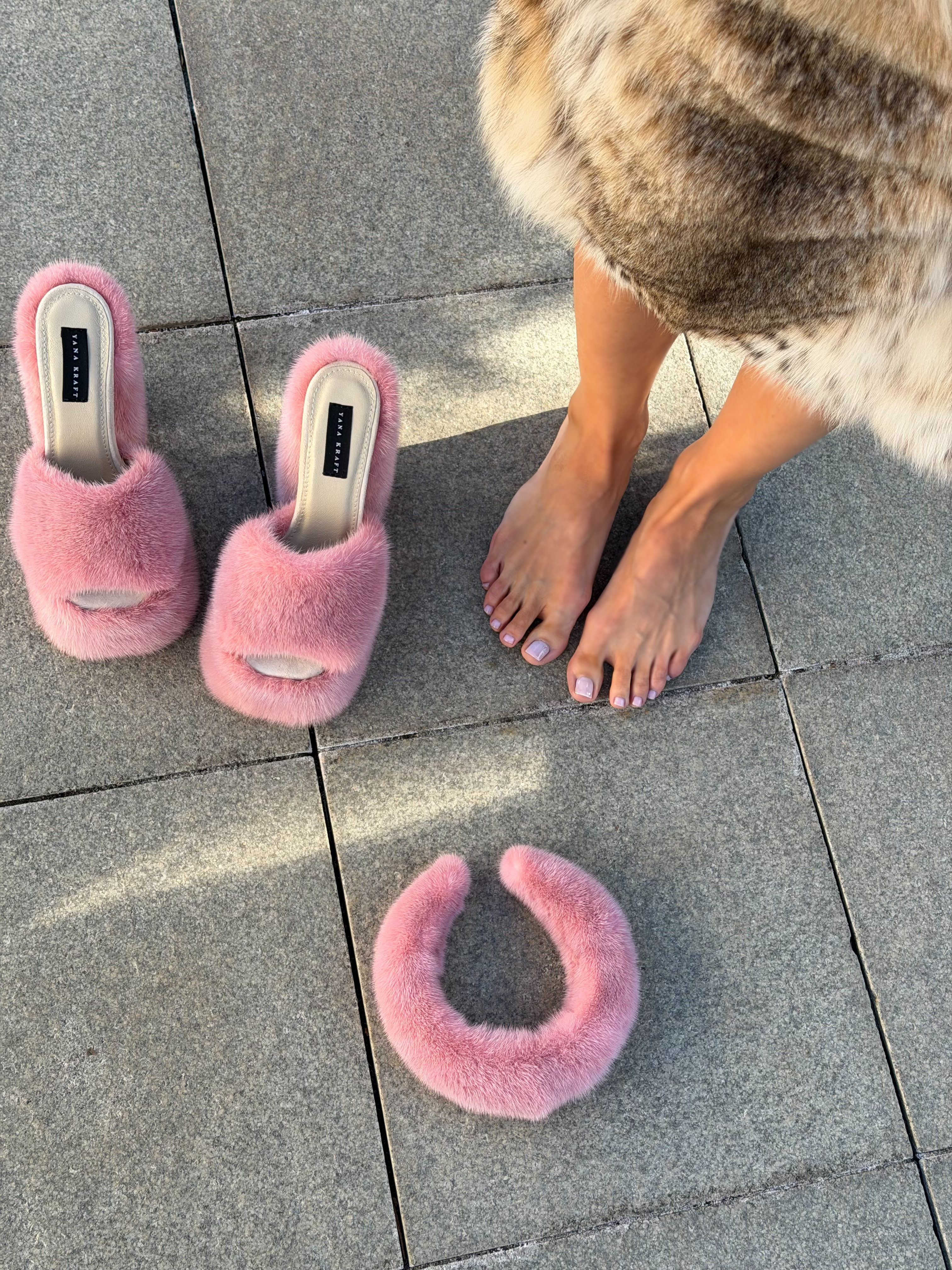 Pink mink fur shoes