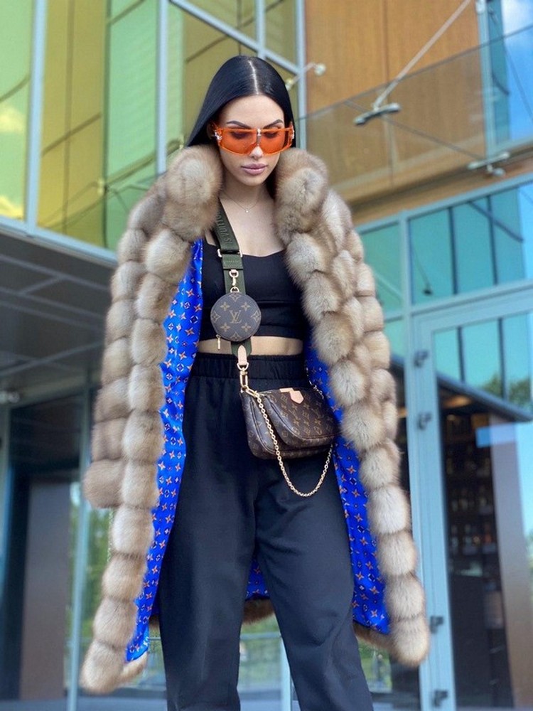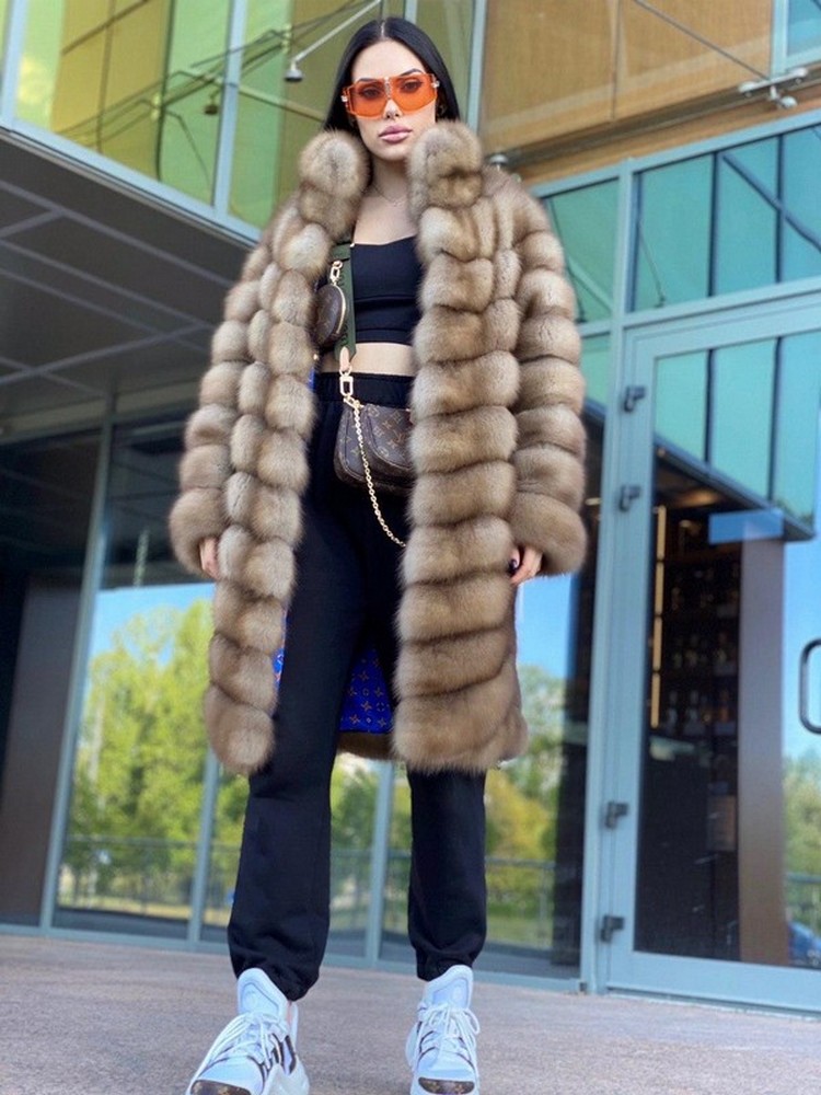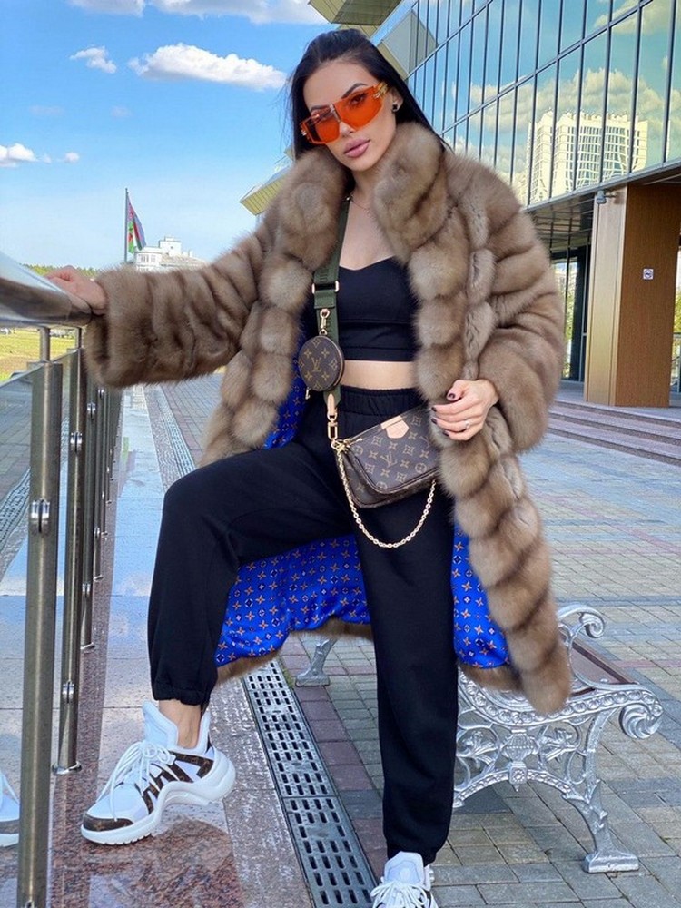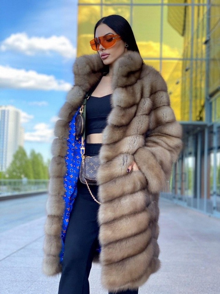 Inside the fur coat made of auction marten fur there is a lining made of 100% silk.