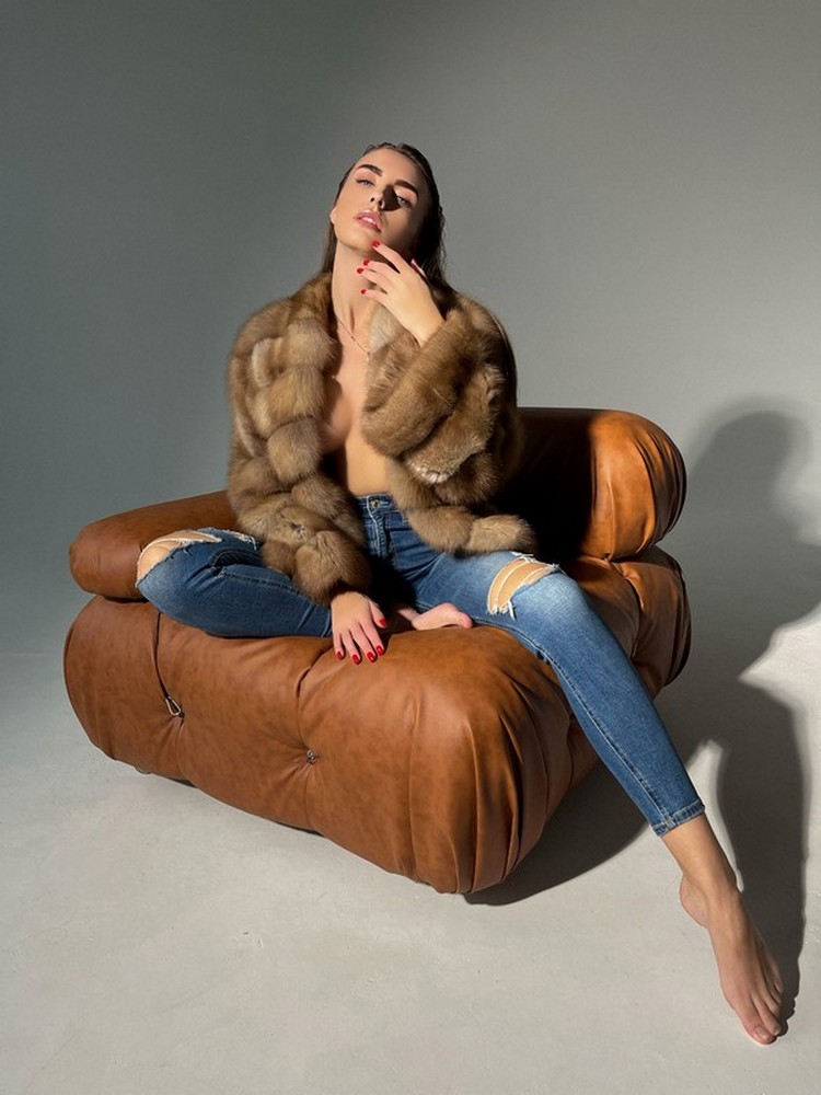 A fur coat made of pine marten in a natural shade.