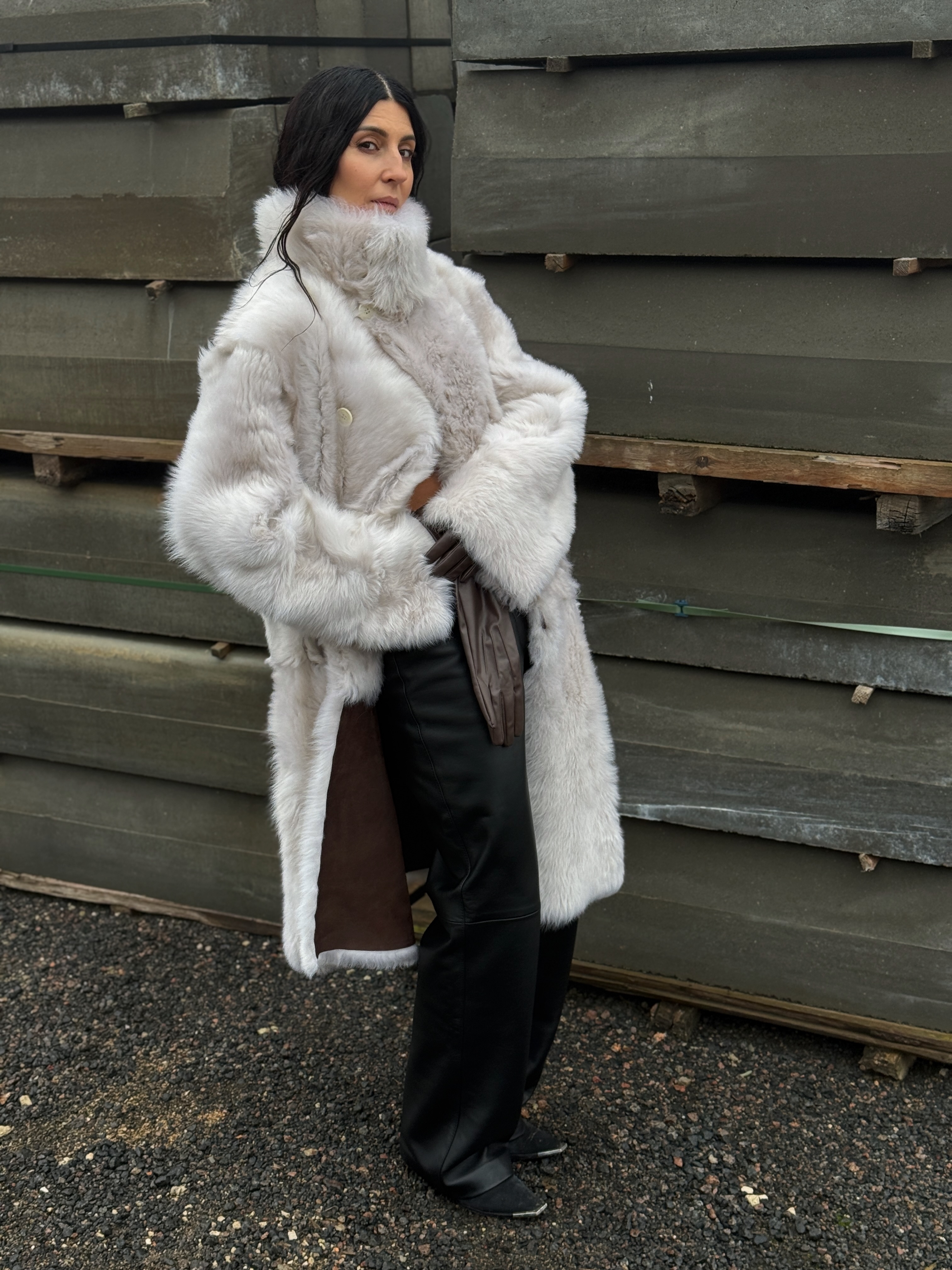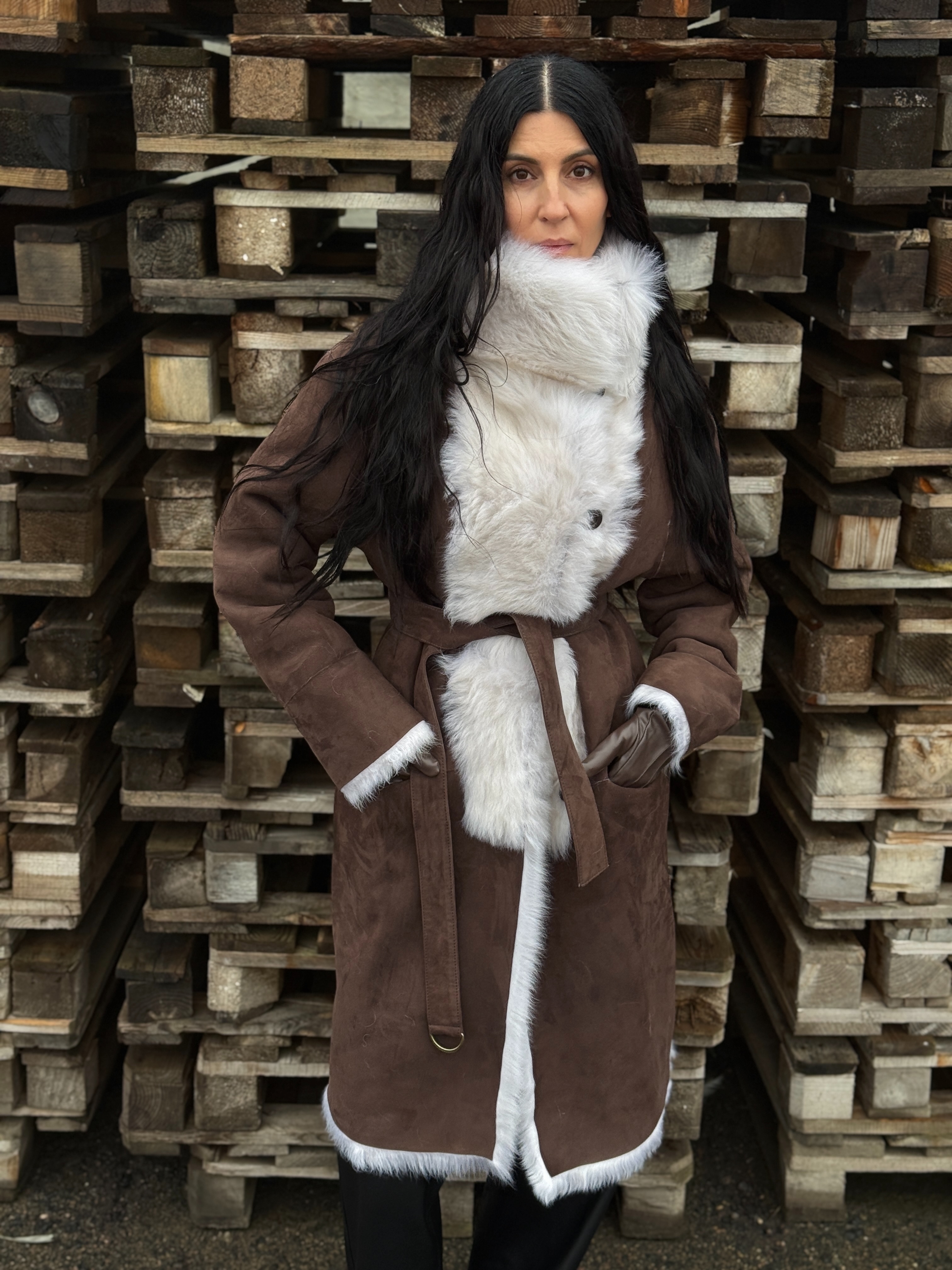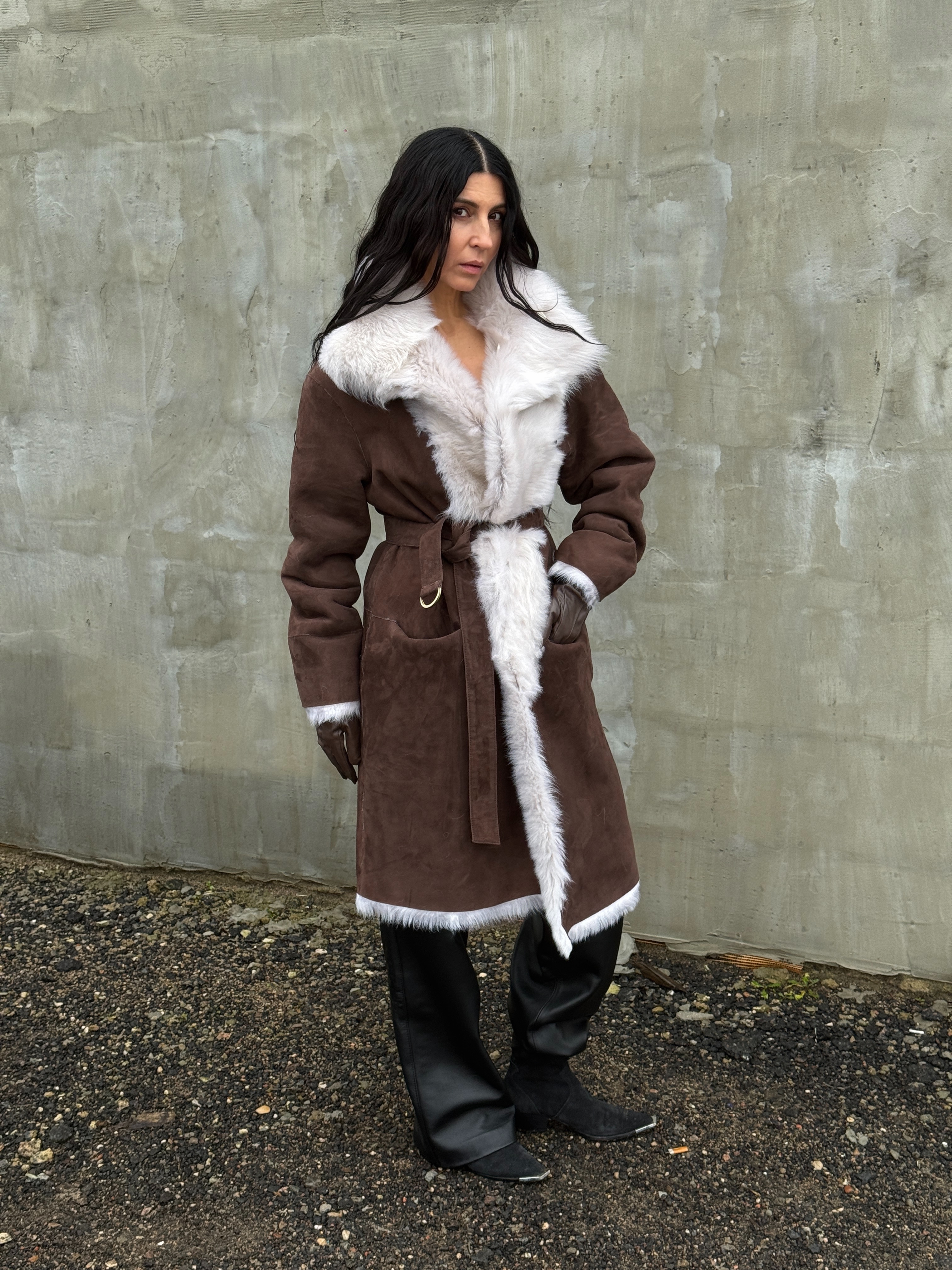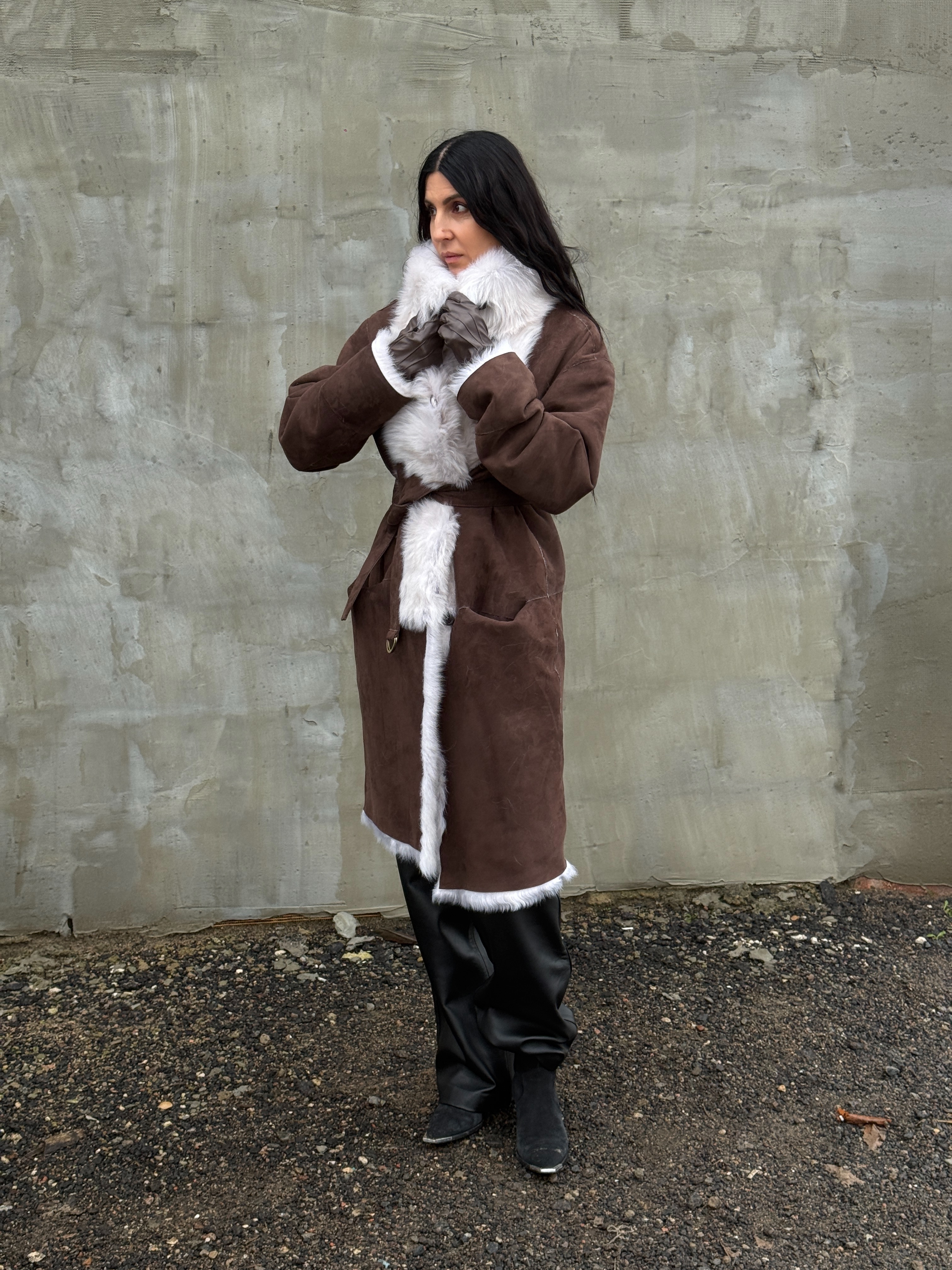 Sheepskin coat length 105 cm
