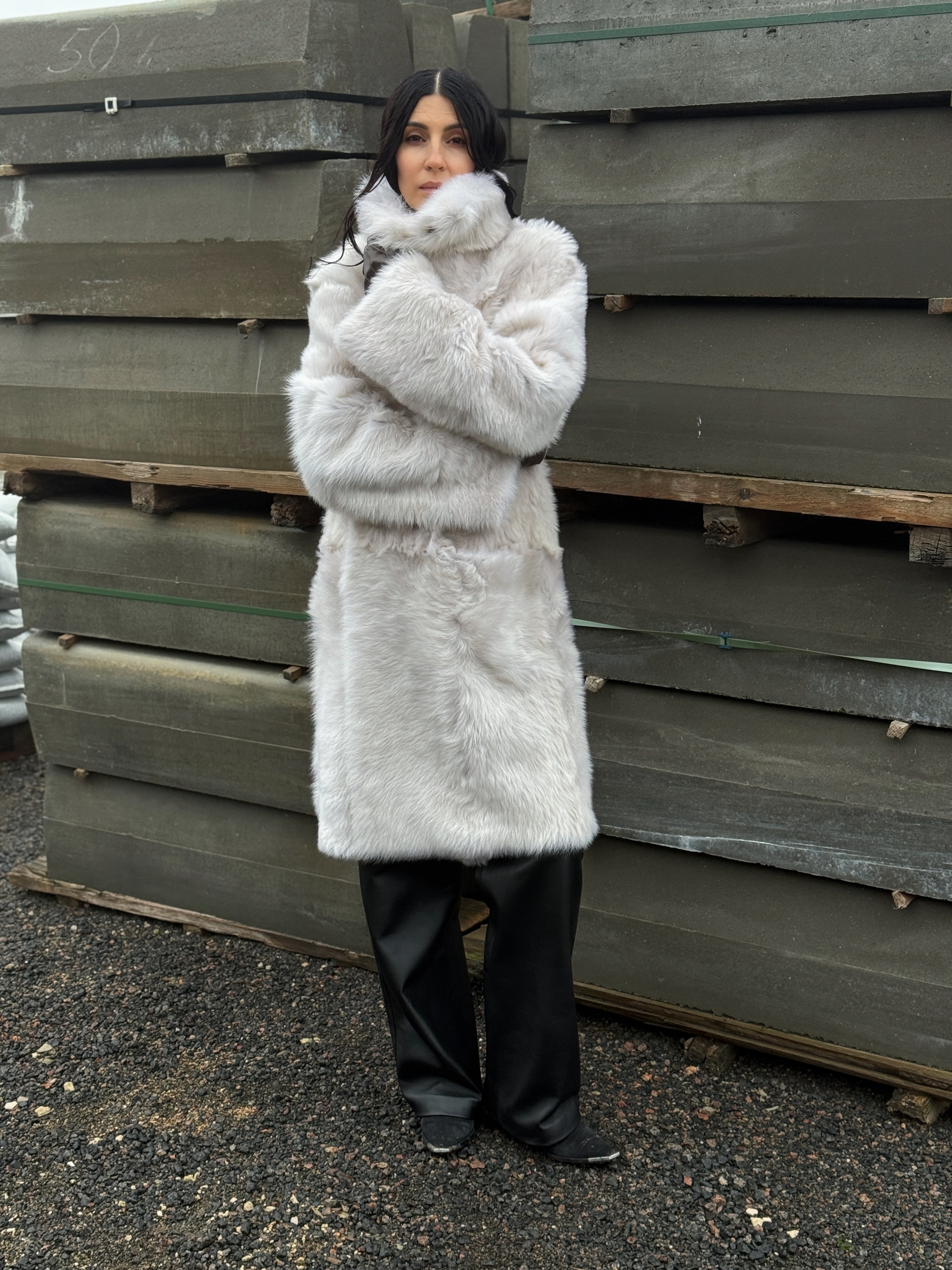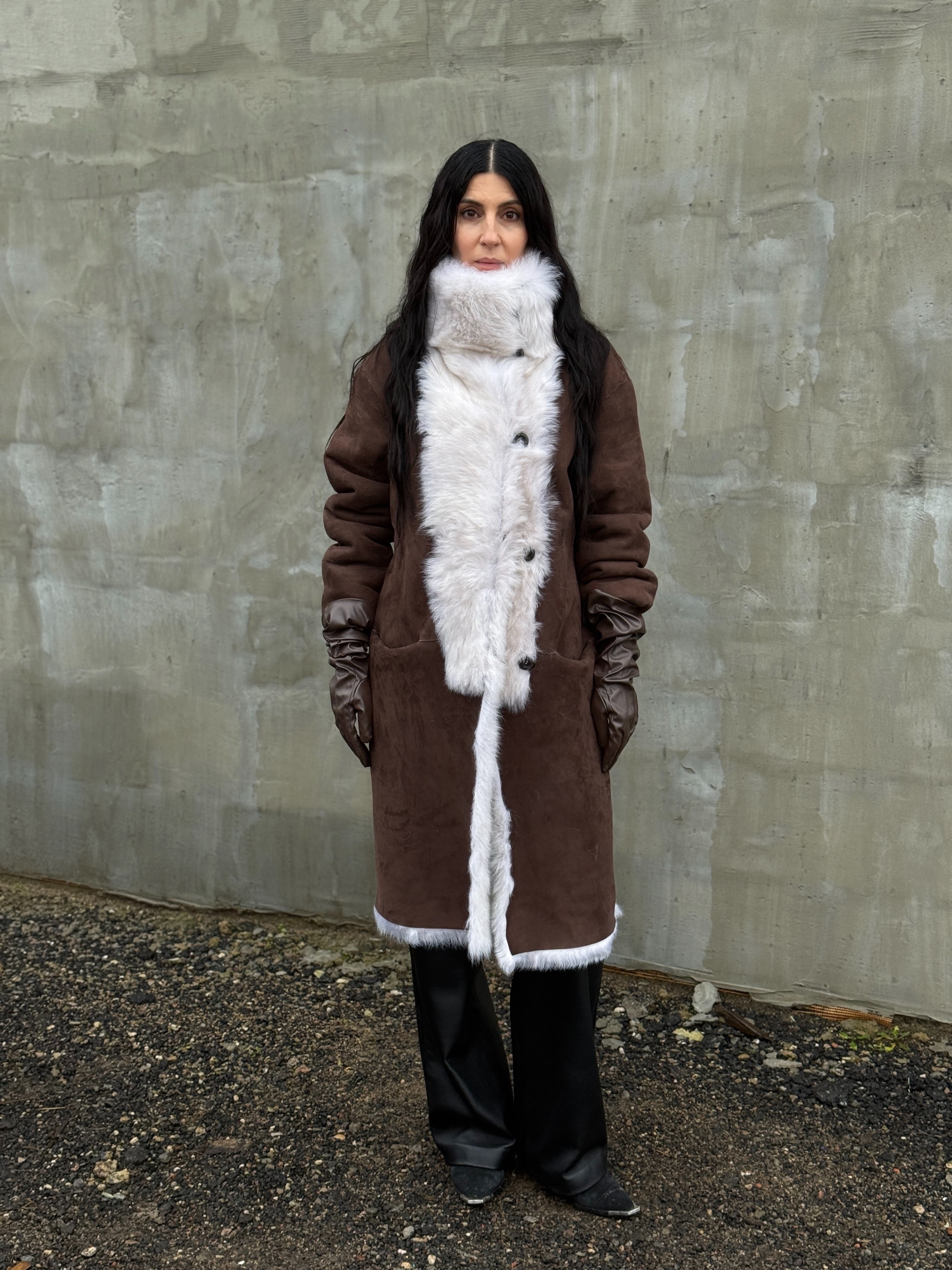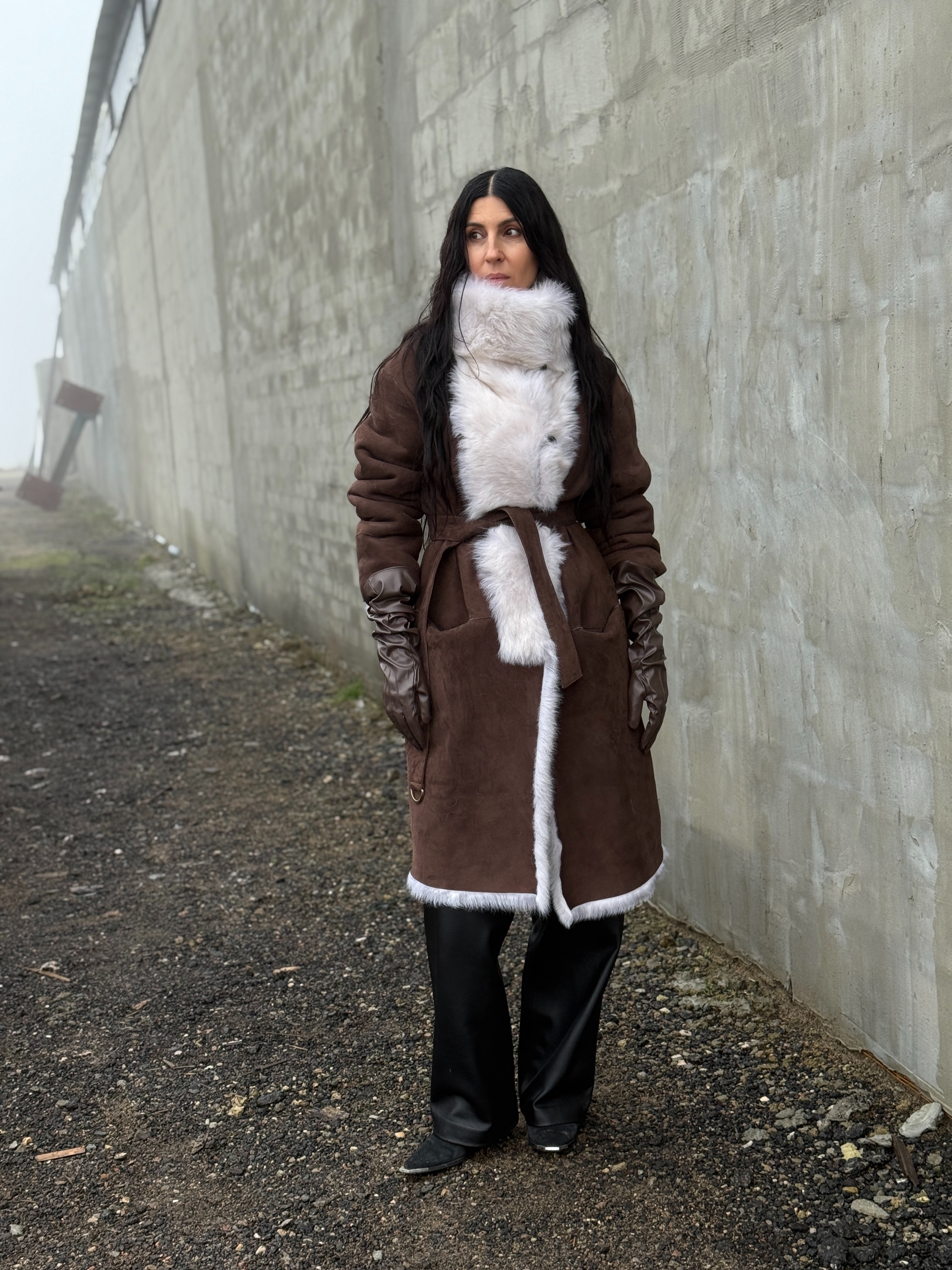 Sheepskin coat length 105 cm