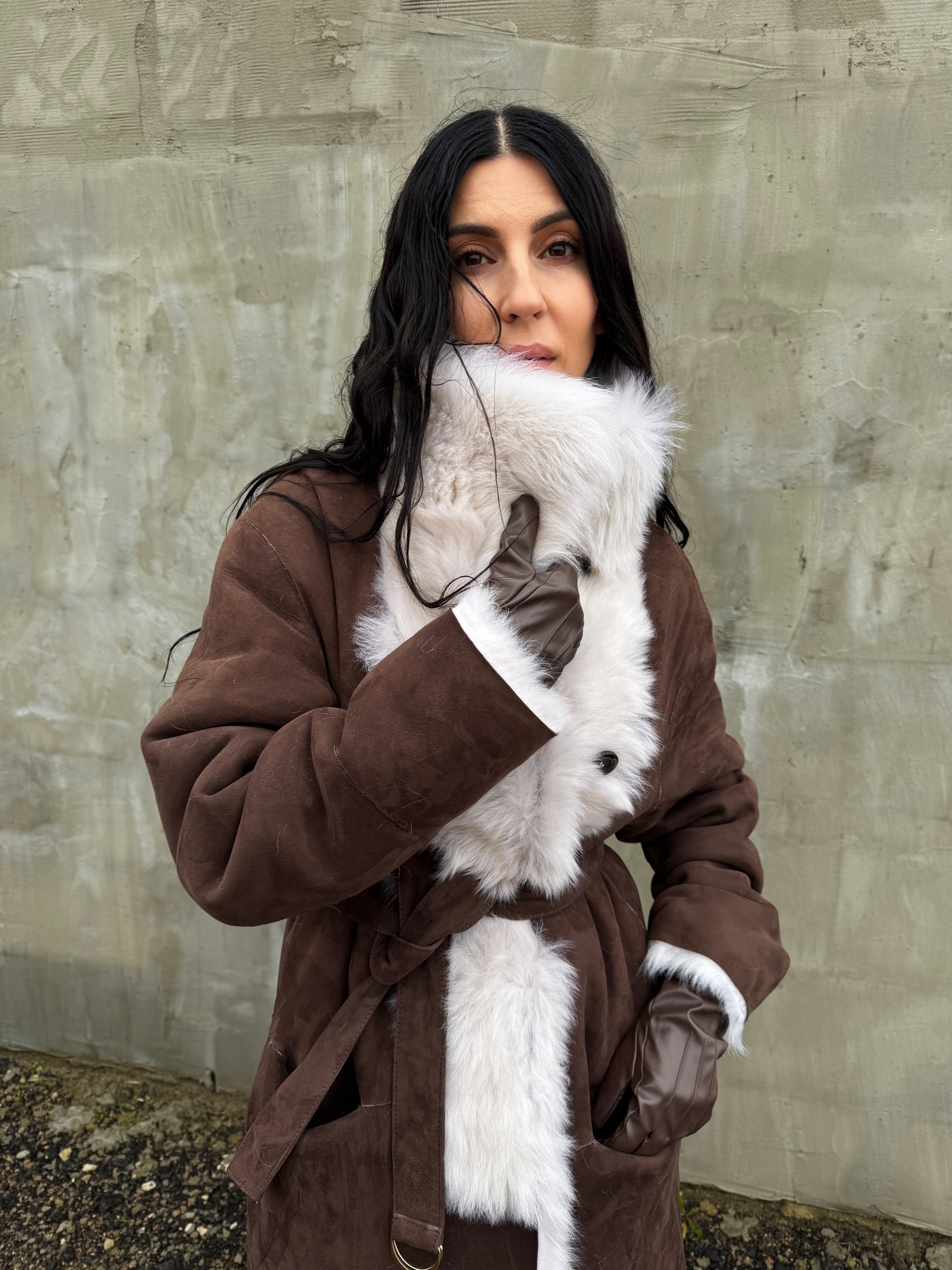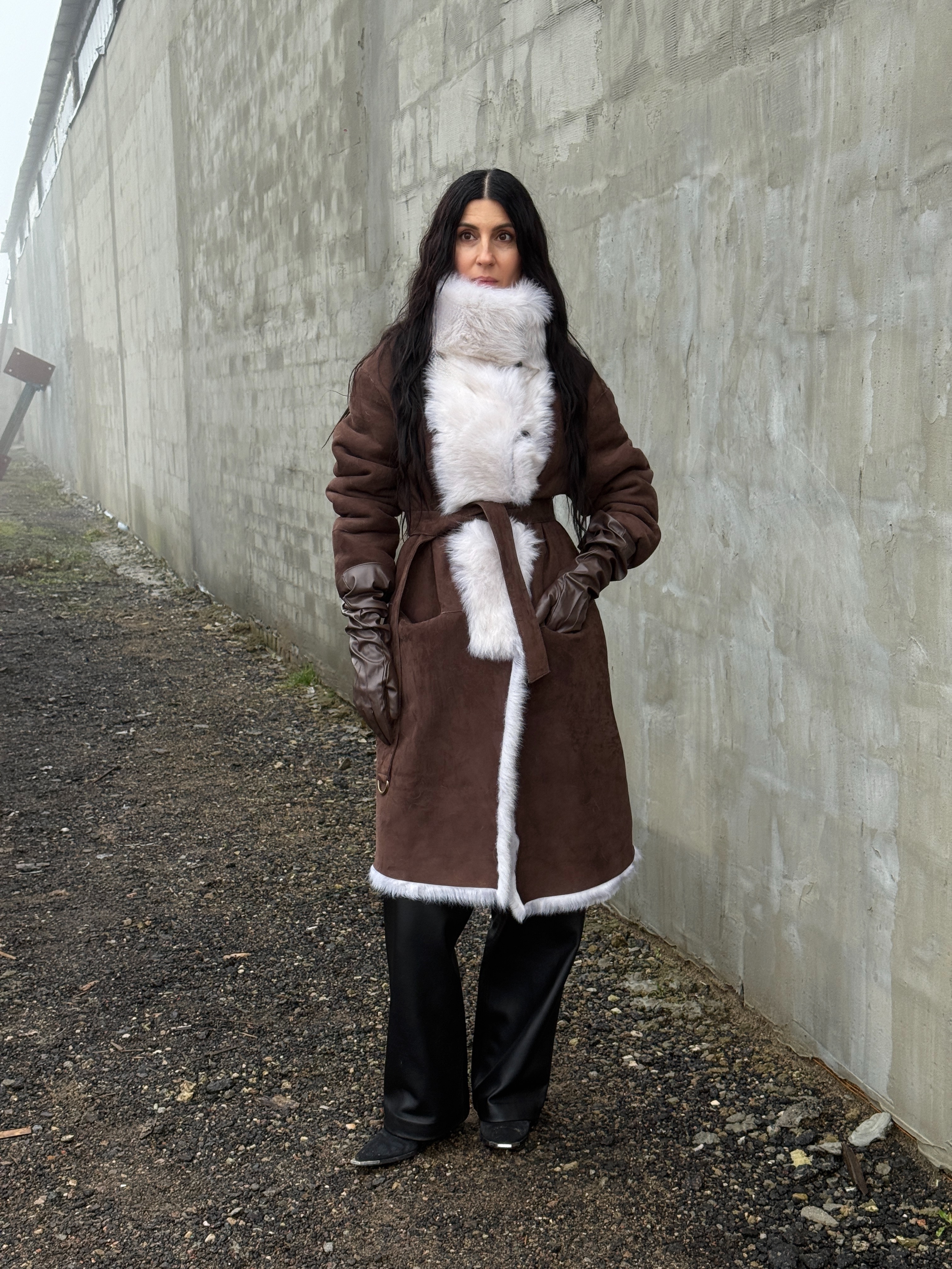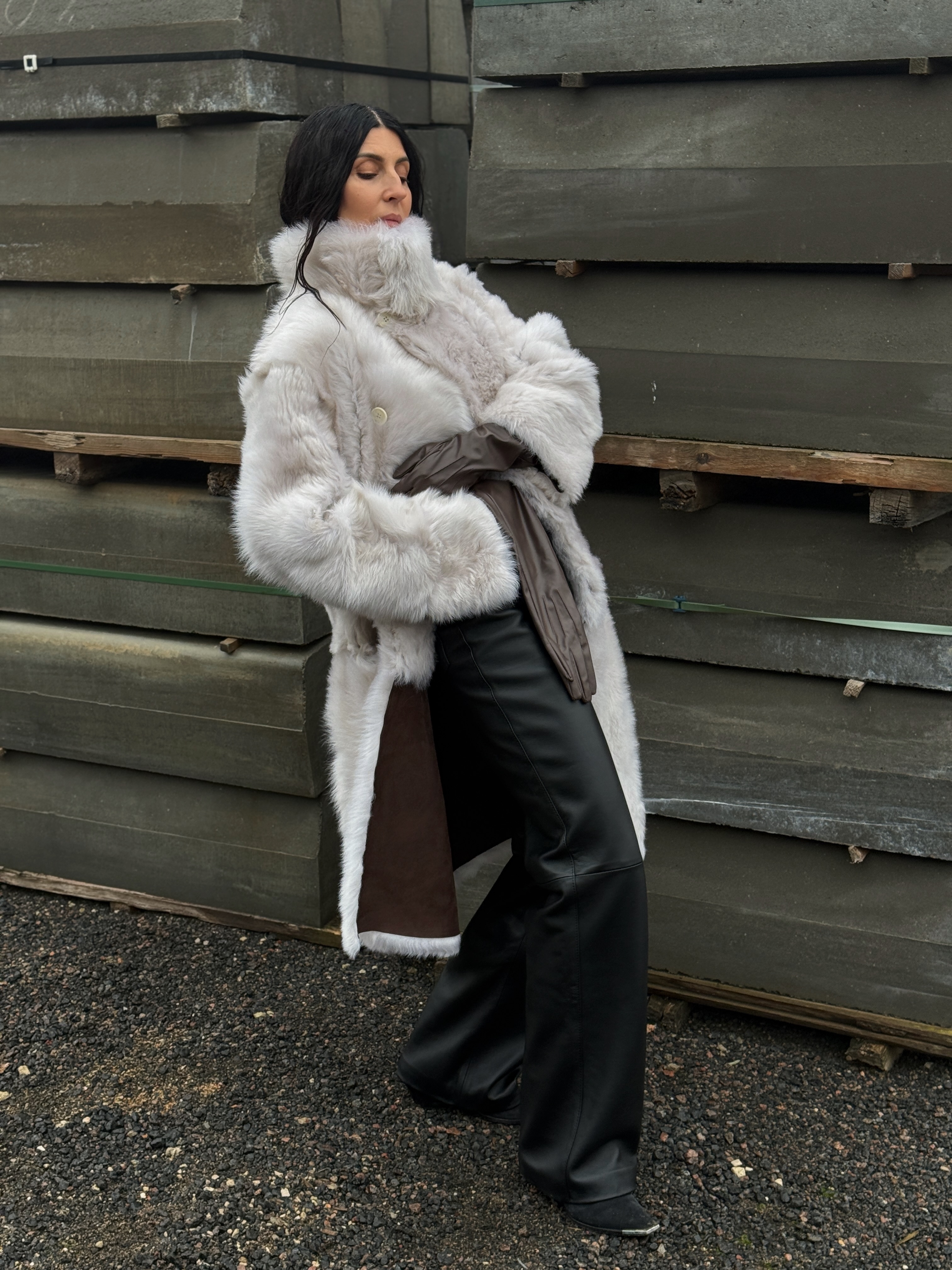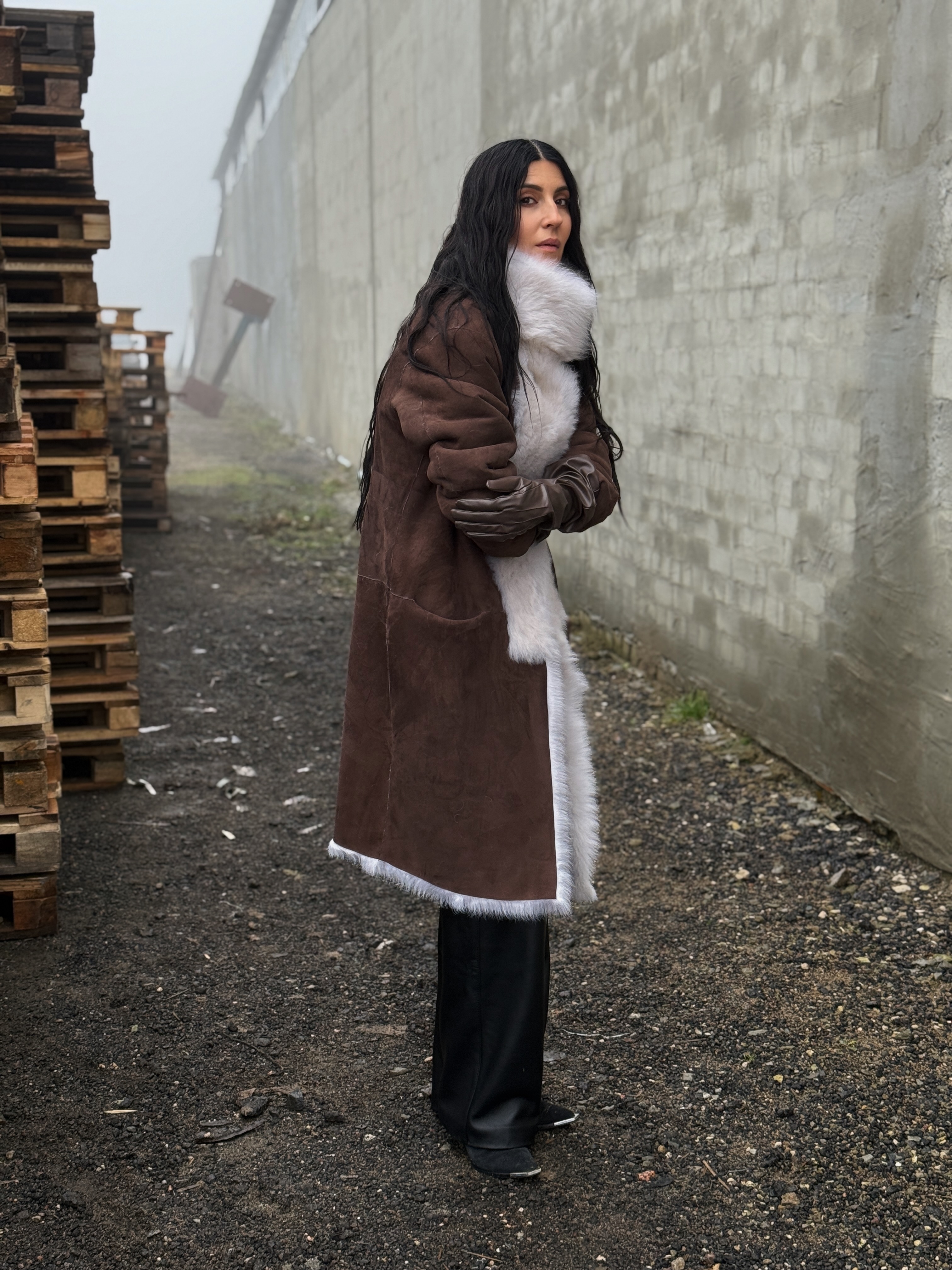 Sheepskin coat length 105 cm