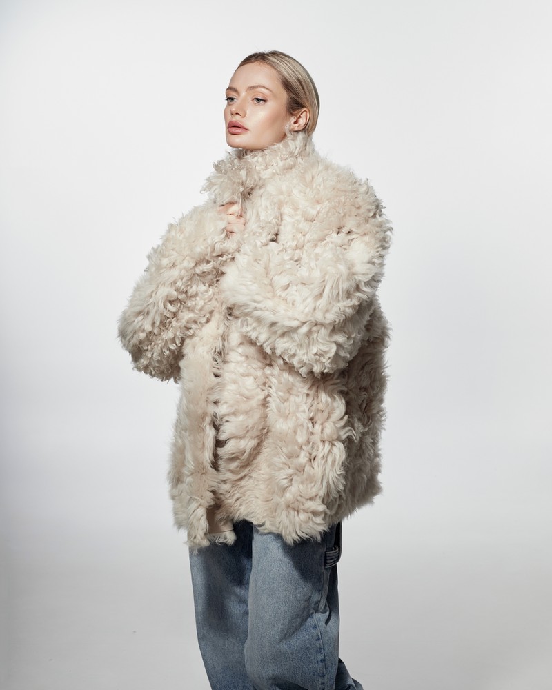 Sheepskin coat length 63 cm