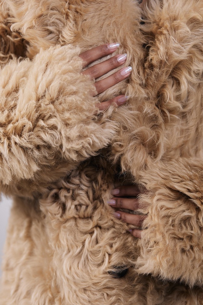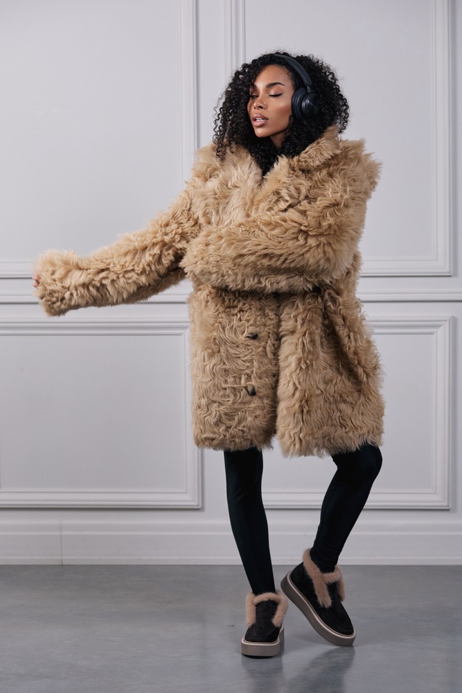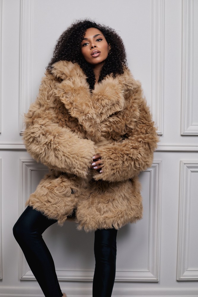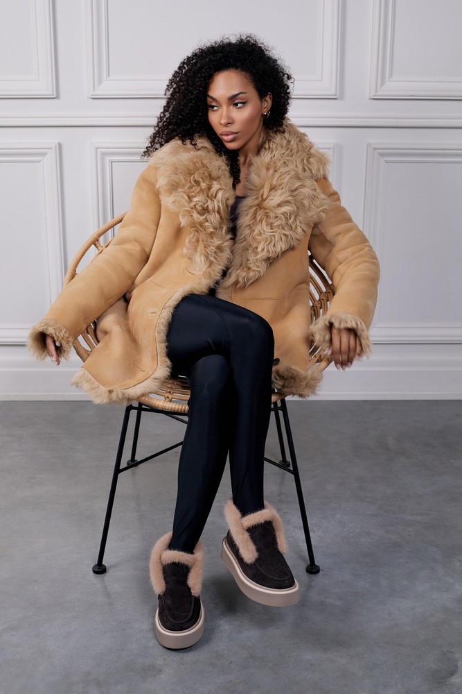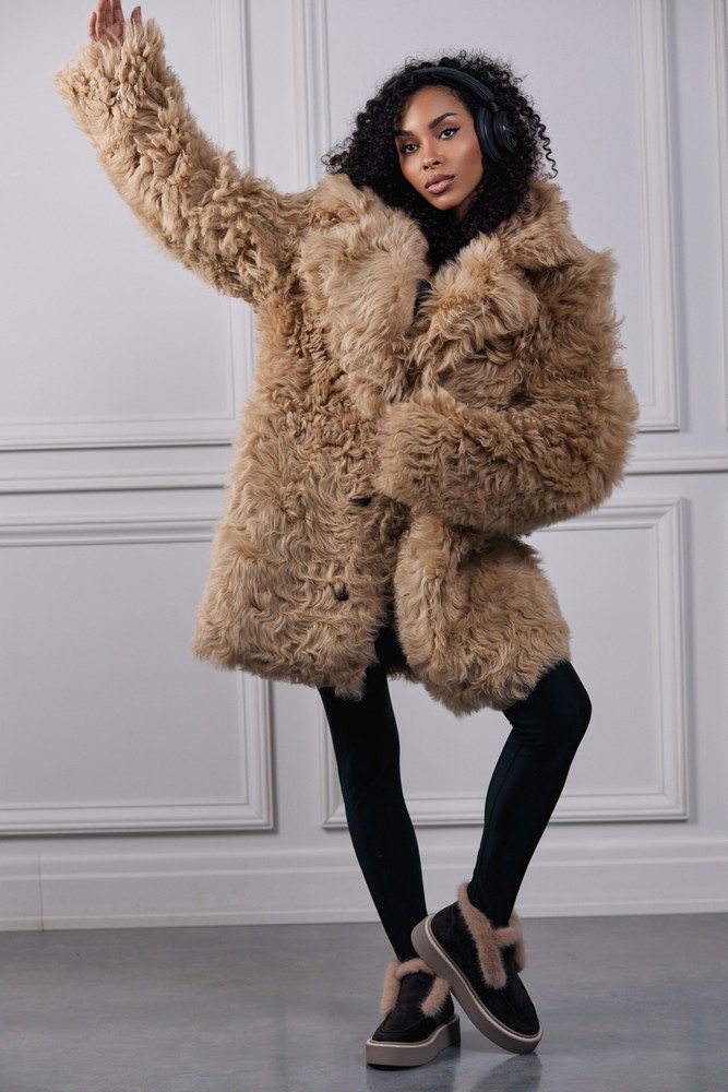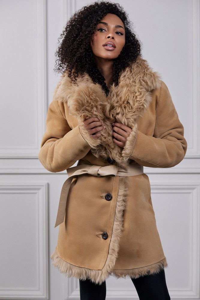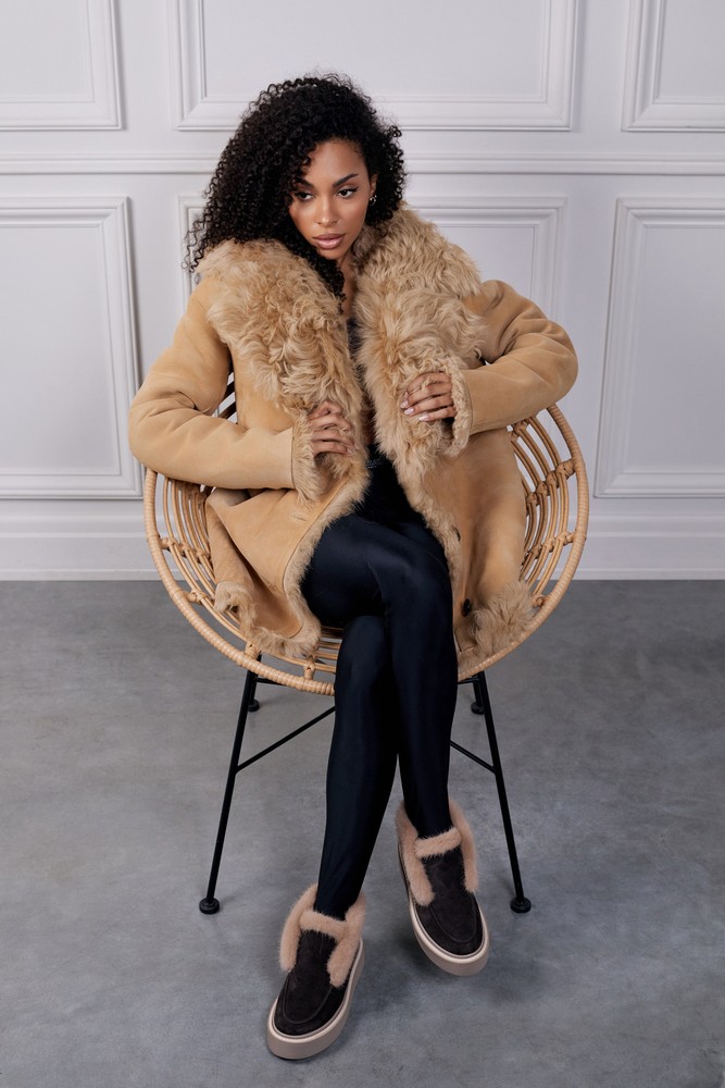 Sheepskin coat with tigrado fur perfect beige