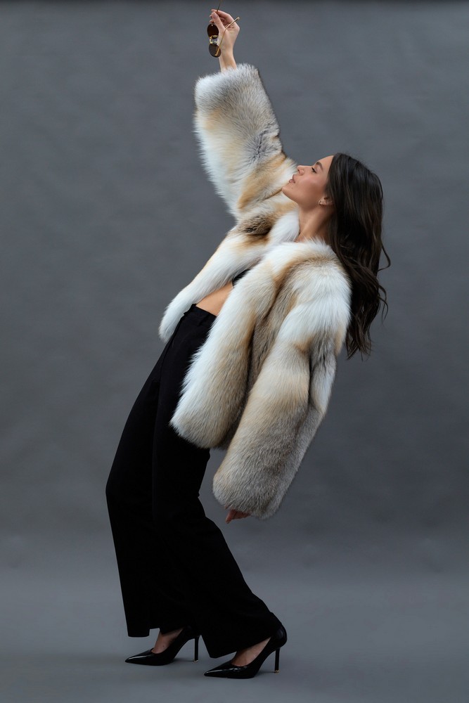 The fur coat is very warm and stylish.