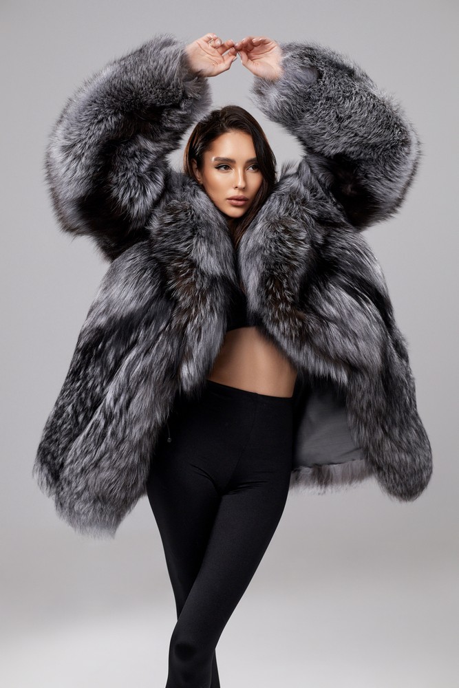 The fur coat is very warm and stylish.