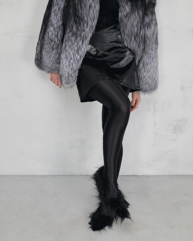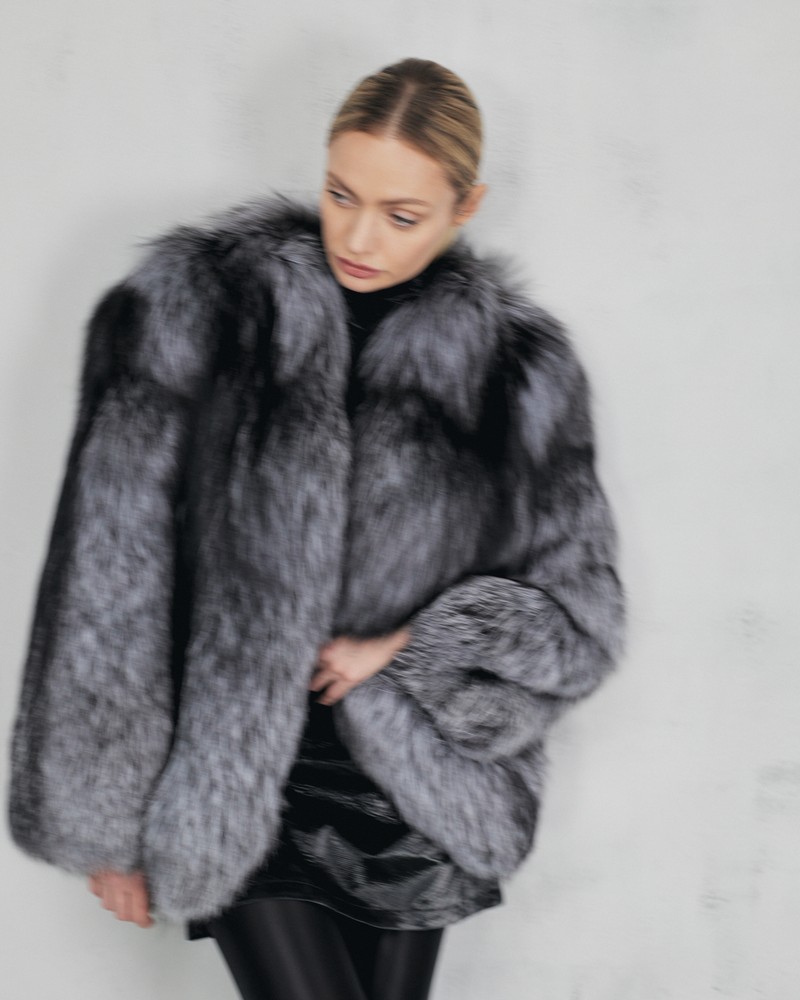 The fur coat is very warm and stylish.