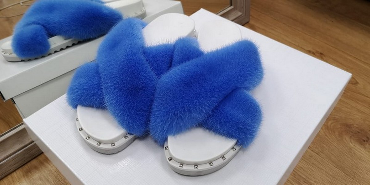 Slippers made of Danish mink fur (also available in arctic fox and rabbit).