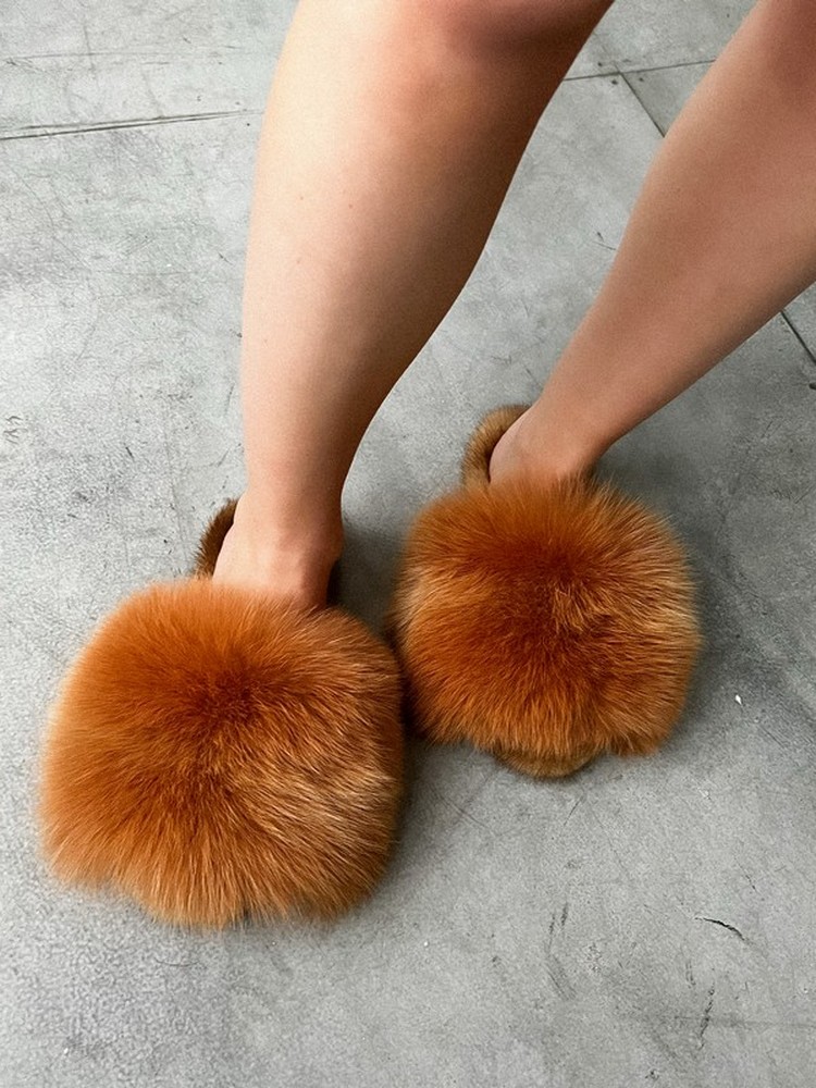 Slippers made of arctic fox and mink fur